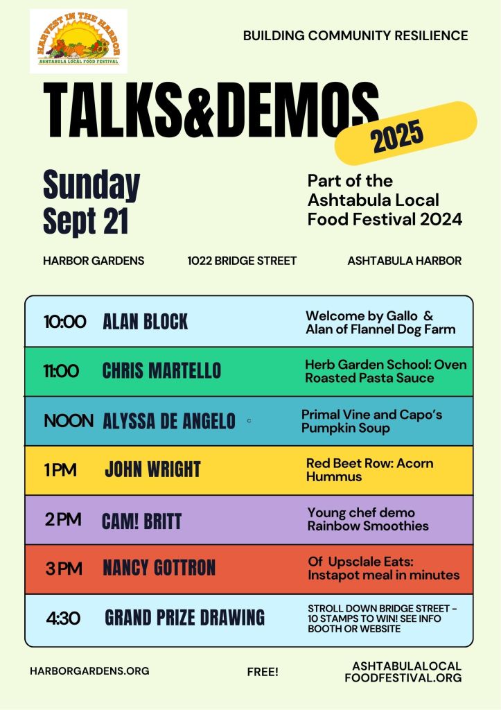 For beginners, the demonstrations provide a chance to build confidence in the kitchen. For experienced cooks, they offer new ideas and a chance to connect with regional talent. The setting at Harbor Gardens highlights the growing emphasis on farm-to-table living in Ashtabula County and beyond. Demos include favorites like Alan Block of Flannel Dog Farm, Alyssa DeAngelo of Primal Vine, Nancy Gottron of Upscale Eats and John Wright of Red Beet Row plus Ghost Talker and Herb School visionary, Chris Martello.