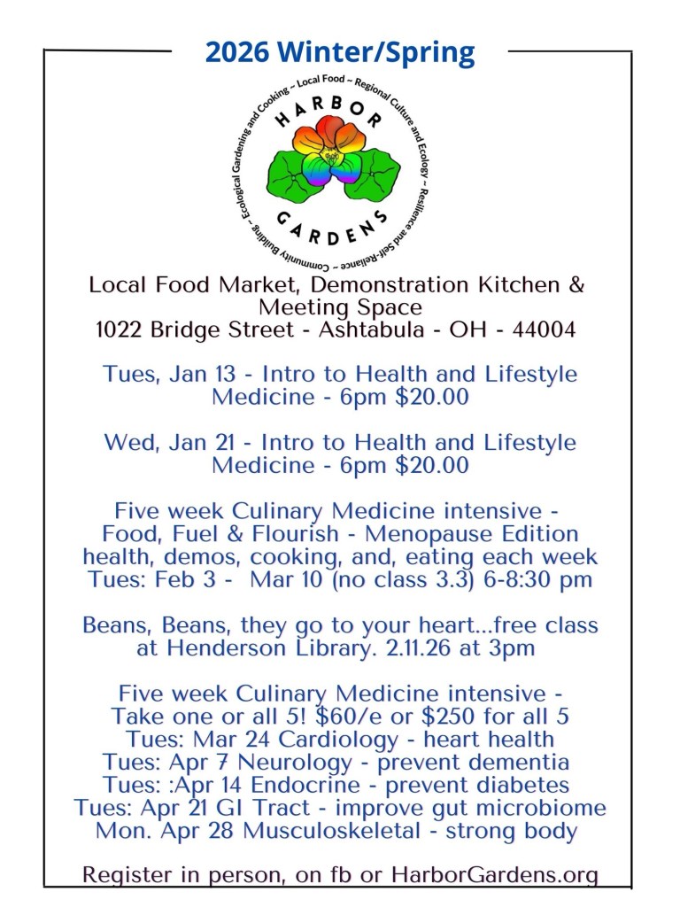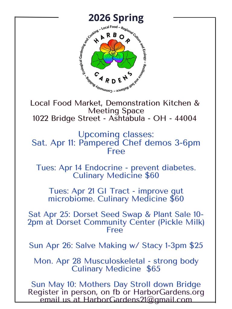 Harbor Gardens is a demonstration kitchen in Ashtabula Harbor. Folks come to enjoy, learn a new skill or technique or just try something different. Our focus is on local food… where tasting, of course, is included!